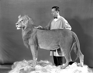 James L. Clark, taxidermist for the American Museum of Natural History, grooming an Asiatic lion for a diorama (1930). Photo: AMNH archives